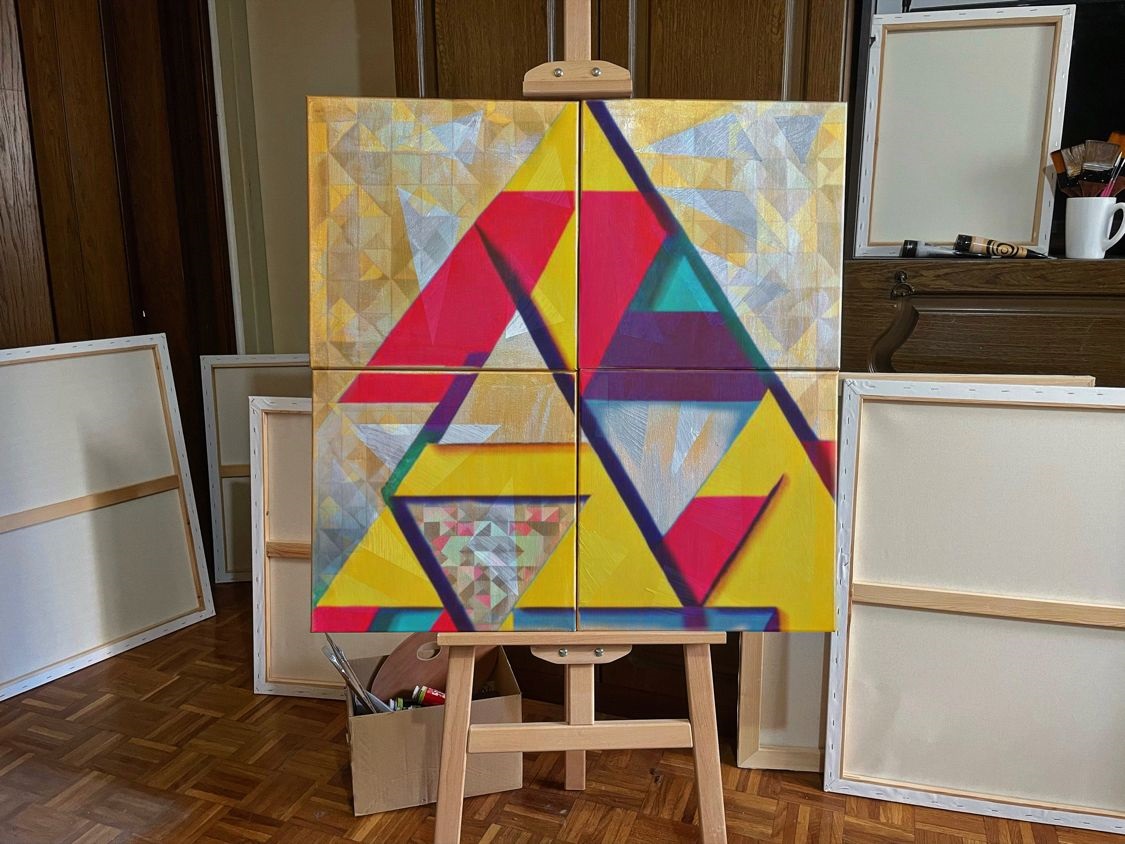 While Sierpiński Triangl is equilateral, this isosceles triangle 17x7x17 will form the A letter as a symbol of 2023. And that A is for Art of the following year – connected and sharp.